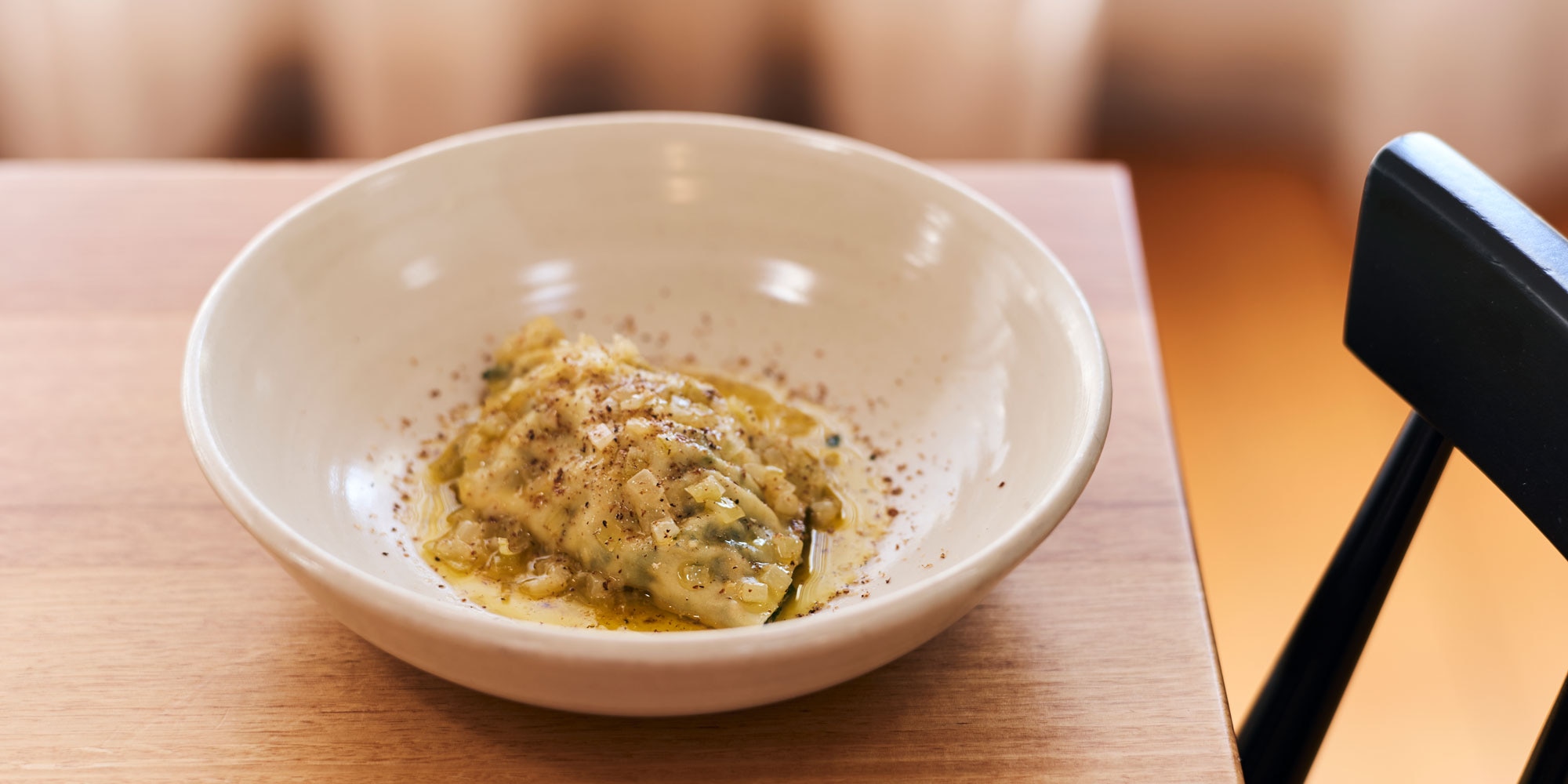 Using the handle of a wooden spoon, press diagonally into rolled pasta every 5cm to form diamond patterns, then cut with a knife into pieces and place onto a lightly greased steam tray. Steam in oven for 20 minutes or until pasta is tender and filling warmed through.